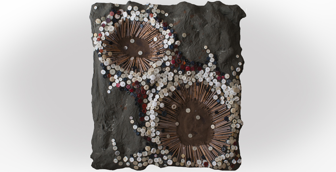 Poliuretano, carta, Kerakol h40, bamboo, bottoni, terra di S.Cosimo, colla di coniglio su tavola